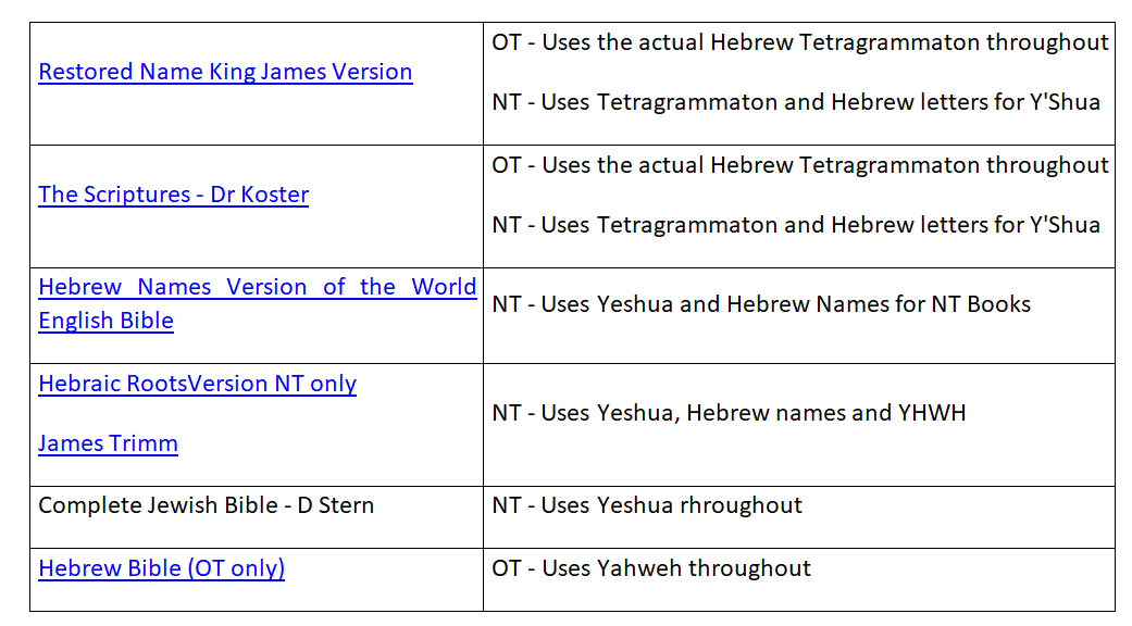 Click here for List of Bible Versions which acknowledge Sacred Names