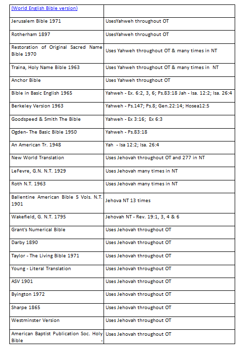 Following is a List of Bible Translation Versions which do recognize the Sacred Name of God to some greater or lesser extent. The power of tradition over people's minds, becomes evident when there is such a long list of authoratative Bible versions which recognise the Sacred Names, yet there is such great opposition by the majority of believers against the use or recognition thereof.